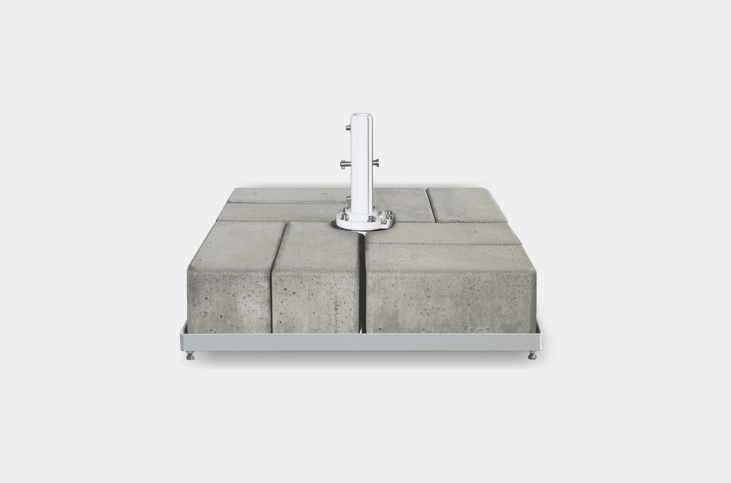 Κάθε σειρά ομπρελών – Aeolus, Armonia, Aegean, Horizon, Astra – συνοδεύεται από τη δική της ειδικά σχεδιασμένη βάση, ώστε να εξασφαλίζεται η σωστή εφαρμογή και η μέγιστη σταθερότητα. Οι βάσεις κατασκευάζονται από σκυρόδεμα και μεταλλικά μέρη γαλβανισμένα ή ανοξείδωτα, βαμμένα ηλεκτροστατικά στο χρώμα της ομπρέλας.